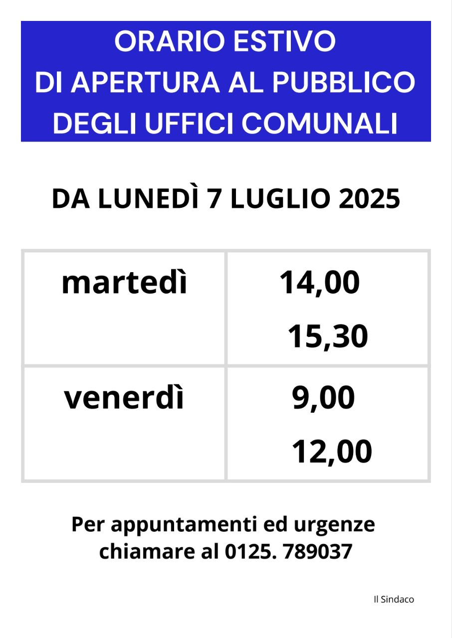 Nel periodo estivo gli uffici comunali saranno aperti come qui indicato.