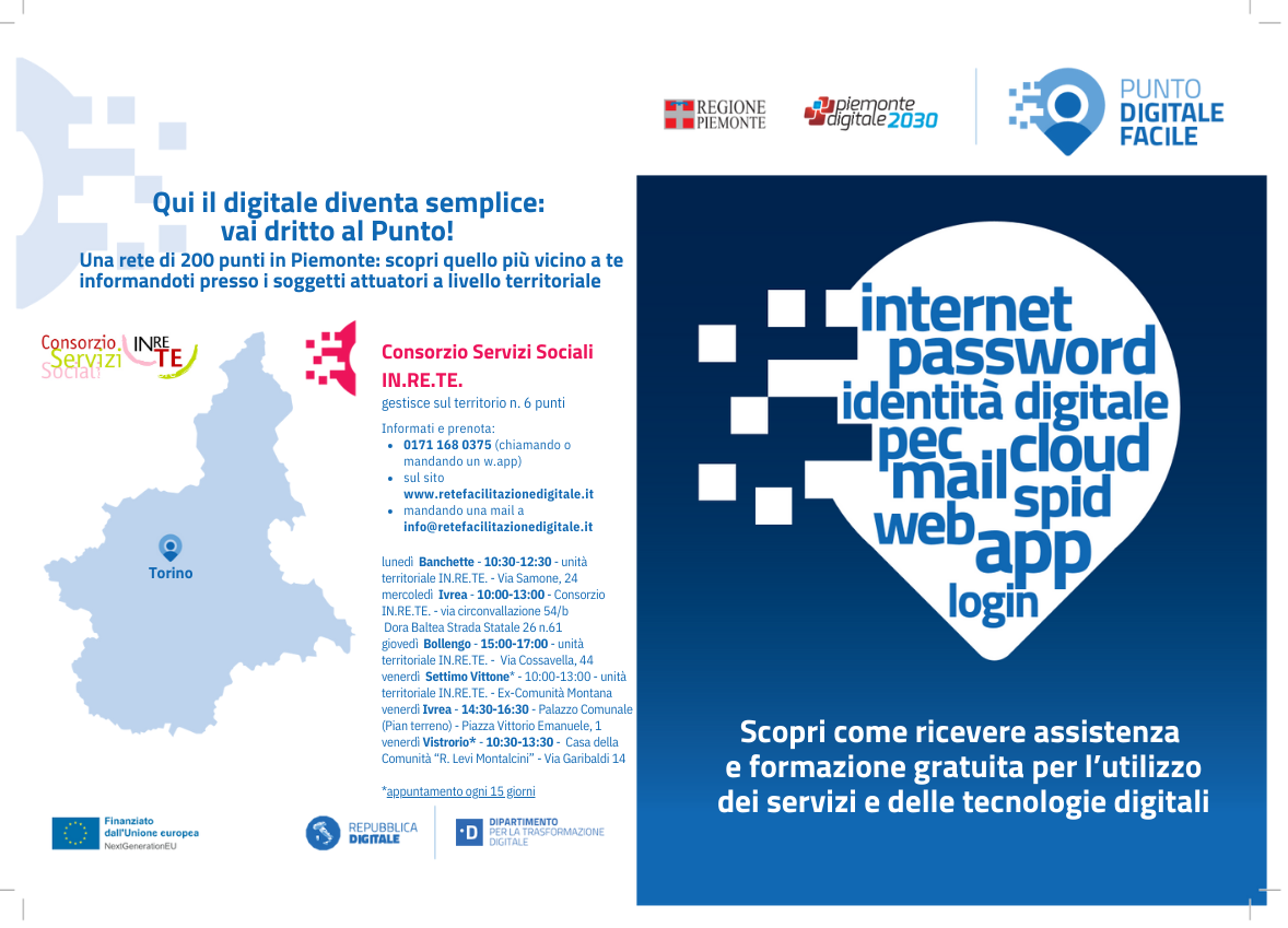 Locandina aggiornata sportelli facilitazione digitale progetto "DIGIT-ABILE" - CONSORZIO IN.RE.TE. MISURA 1.7.2. PNRR