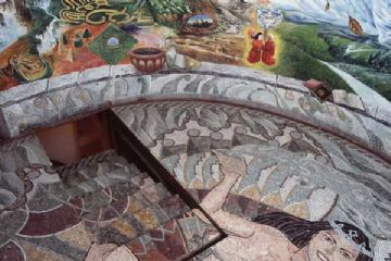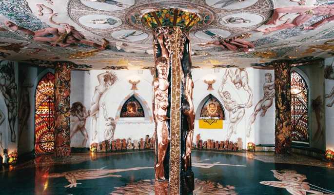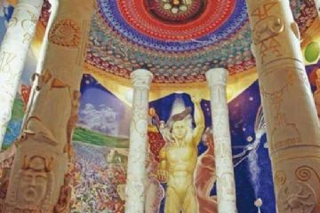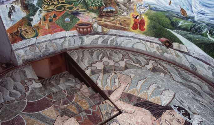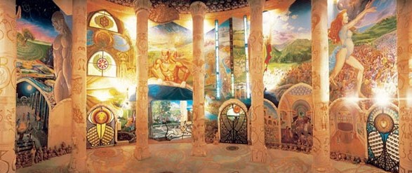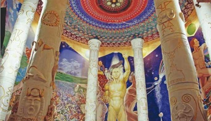 La figura femminile in mosaico al centro del pavimento rappresenta la carta dei Tarocchi “La Stella”, simbolo dell’idealismo pratico e della bellezza che hanno ispirato la creazione stessa dei Templi.