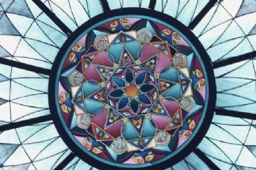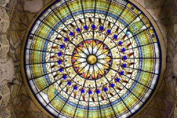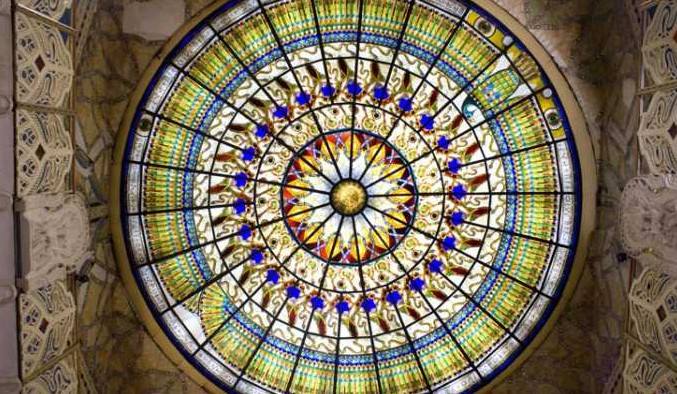 La luce proviene dall’ alto, attraversando una preziosa cupola, in vetro Tiffany. La sfumatura dominante è il giallo del sole, ma sono presenti anche tutti i colori dell’arcobaleno. Le luci che la illuminano da dietro donano l’impressione che al di sopra ci sia il cielo aperto e grazie a un abile gioco di riflessi sulle superfici a specchio, la luminosità si diffonde in tutto lo spazio.