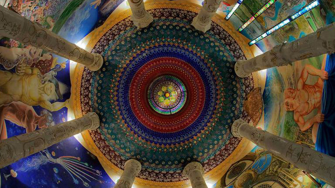La Sala a oggi contiene 35 finestre, dedicata ad altrettante forze divine, e il progetto prevede che a Sala conclusa, le divinità rappresentate siano molte di più a rappresentare i contenitore di energie ed ideali di tutti i popoli e tutti i tempi.
